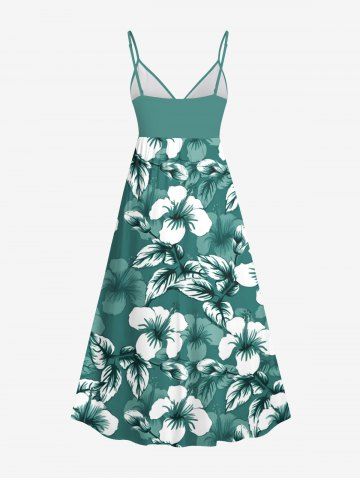 Graphic Dresses > Plus Size Tropical Leaf Hibiscus Flower Print Hawaii Surplice A Line Cami Dress