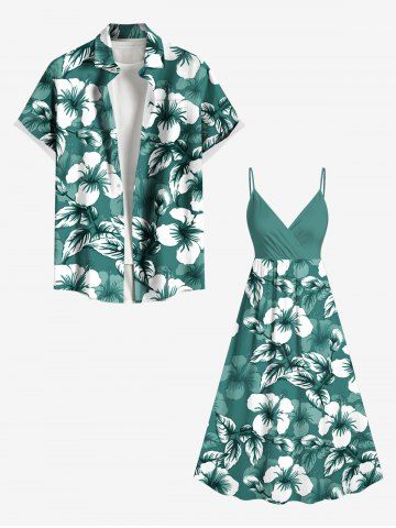 Graphic Dresses > Plus Size Tropical Leaf Hibiscus Flower Print Hawaii Surplice A Line Cami Dress