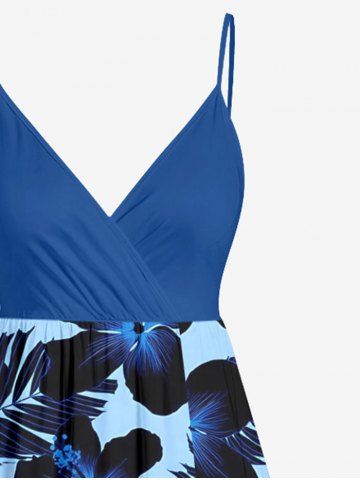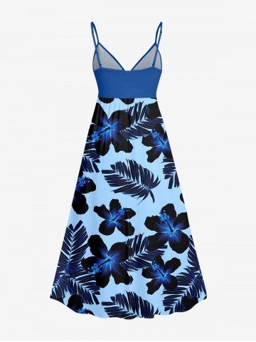 Plus Size Tropical Leaf Hibiscus Flower Print Hawaii Surplice A Line Cami Dress - Blue - 4x