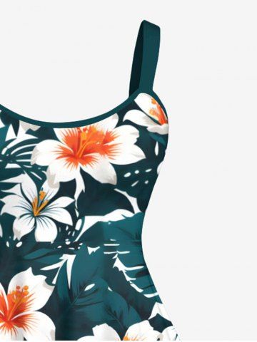 Plus Size Tropical Leaf Hibiscus Flower Print Hawaii Tank Dress - Green - Xs