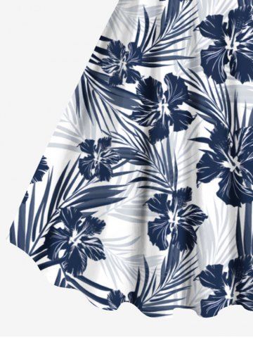 Plus Size Tropical Leaf Hibiscus Flower Print Hawaii Tank Dress - Blue - 1x
