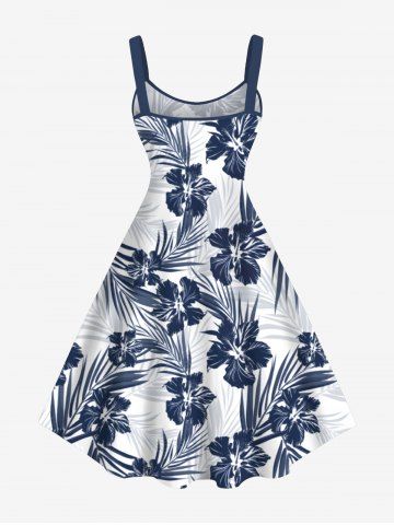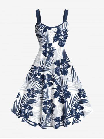 Plus Size Tropical Leaf Hibiscus Flower Print Hawaii Tank Dress - Blue - 5x