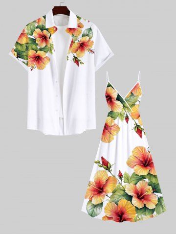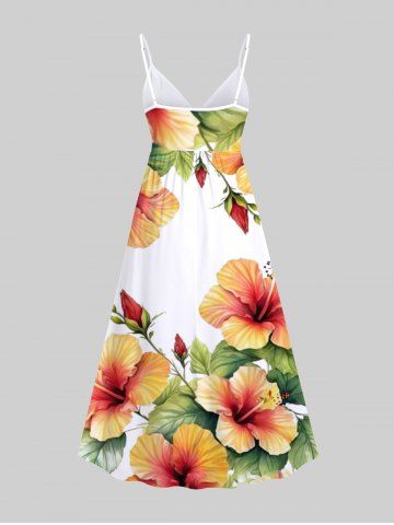 Plus Size Tropical Leaf Hibiscus Flower Print Surplice Hawaii Cami Dress - White - 3x