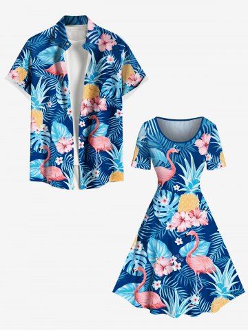 Graphic Dresses > Plus Size Tropical Leaf Hibiscus Flowers Pineapple Print Vintage Hawaii Dress