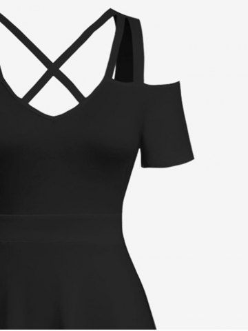 Plus Size Tropical Leaf Hibiscus Flowers Print Cold Shoulder Crisscross Hawaii Maxi Dress - Black - 2x