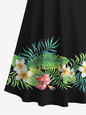 Plus Size Tropical Leaf Hibiscus Flowers Print Cold Shoulder Crisscross Hawaii Maxi Dress - Black - 5x