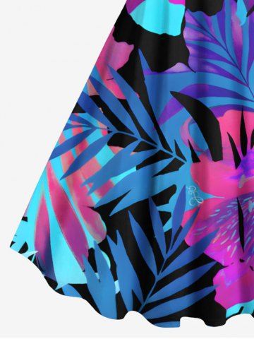 Graphic Dresses > Plus Size Tropical Leaf Hibiscus Flowers Print Hawaii Tank Dress