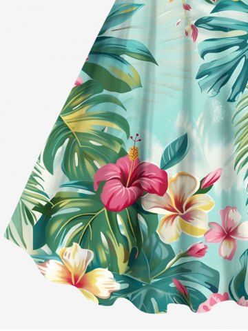 Graphic Dresses > Plus Size Tropical Leaf Hibiscus Flowers Print Hawaii Tank Dress