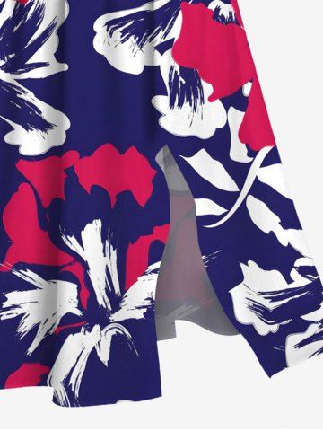 Graphic Dresses > Plus Size Tropical Leaf Hibiscus Flowers Print Split Hawaii Midi Dress