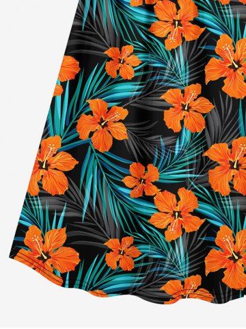 Plus Size Tropical Leaf Hibiscus Flowers Print Surplice Hawaii Cami Dress - Multi-a - L