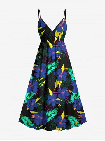 Graphic Dresses > Plus Size Tropical Leaf Hibiscus Flowers Print Surplice Hawaii Cami Dress