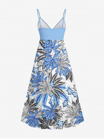 Plus Size Tropical Leaf Hibiscus Flowers Print Surplice Hawaii Cami Dress - Sky Blue - 2x