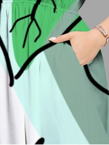 Plus Size Tropical Leaf Ombre Colorblock Print Hawaii Split Pocket A Line Midi Dress - Green - S