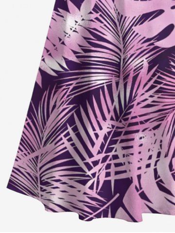 Plus Size Tropical Leaf Ombre Print Crisscross Cold Shoulder Hawaii Maxi Dress - Purple - 5x
