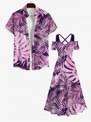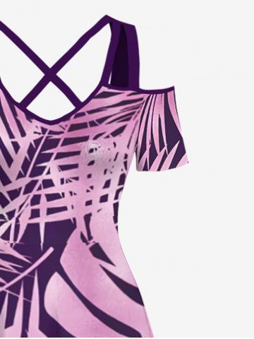 Plus Size Tropical Leaf Ombre Print Crisscross Cold Shoulder Hawaii Maxi Dress - Purple - 6x