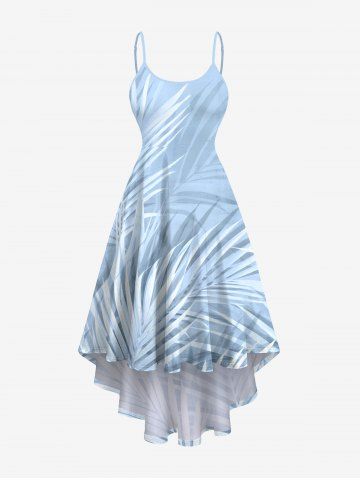 Graphic Dresses > Plus Size Tropical Leaf Ombre Print High Low Hawaii Cami Dress