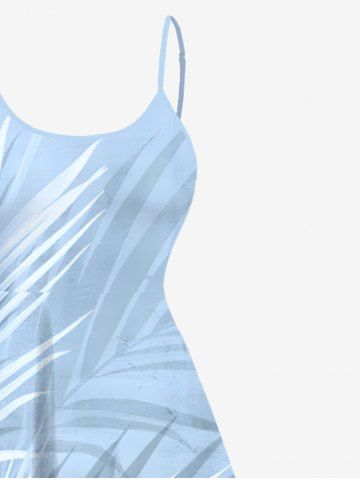 Plus Size Tropical Leaf Ombre Print High Low Hawaii Cami Dress - White - M