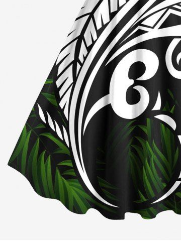Plus Size Tropical Leaf Paisley Floral Print Hawaii Tank Dress - Black - 1x