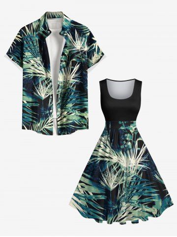 Graphic Dresses > Plus Size Tropical Leaf Print Hawaii 1950s Vintage Dress