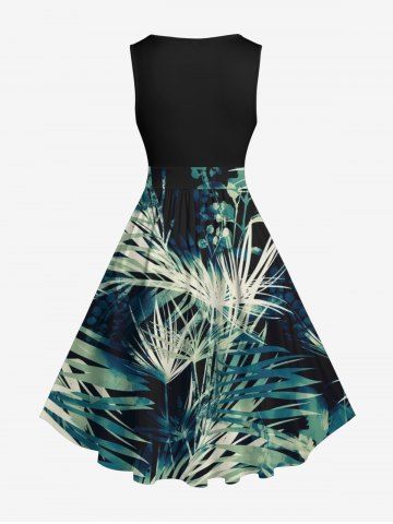 Plus Size Tropical Leaf Print Hawaii 1950s Vintage Dress - Black - 6x