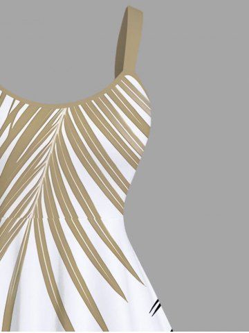 Plus Size Tropical Leaf Print Hawaii Tank Dress - White - 3x
