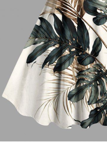 Plus Size Tropical Leaf Print Hawaii Tank Dress - White - 2x