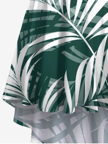 Plus Size Tropical Leaf Print High Low Hawaii Cami Dress - Green - S