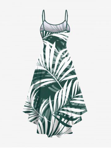 Plus Size Tropical Leaf Print High Low Hawaii Cami Dress - Green - 3x