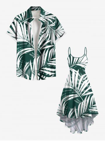 Plus Size Tropical Leaf Print High Low Hawaii Cami Dress - Green - 5x