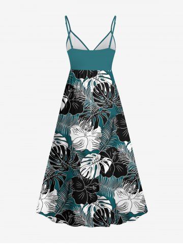 Plus Size Tropical Leaf Print Surplice Hawaii Cami Dress - Green - 4x