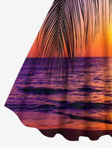 Plus Size Tropical Leaf Sun Waves Seascape Print Hawaii Tank Dress - Orange - Xs