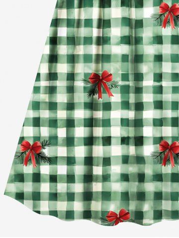 Graphic Dresses > Plus Size Tropical Leaves Bowknot Plaid Print Hawaii St. Patrick's Day Surplice A Line Cami Dress