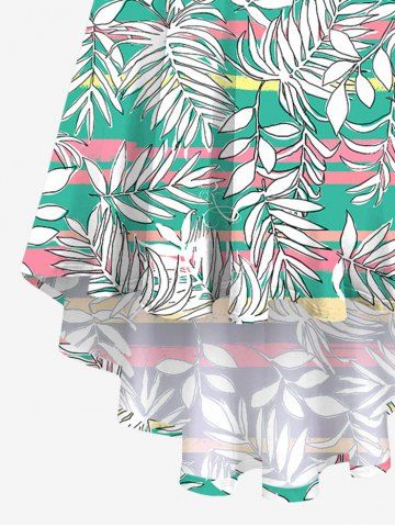 Plus Size Tropical Leaves Colorful Striped Print Hawaii High Low Asymmetric Backless A Line Cami Dress - Green - S