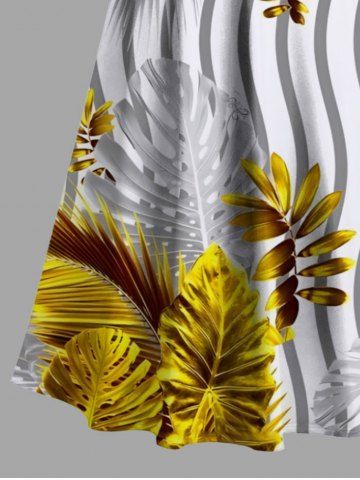 Graphic Dresses > Plus Size Tropical Leaves Contrast Zig Zag Striped Print Hawaii Cold Shoulder Crisscross A Line Maxi Dress