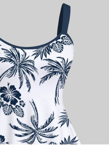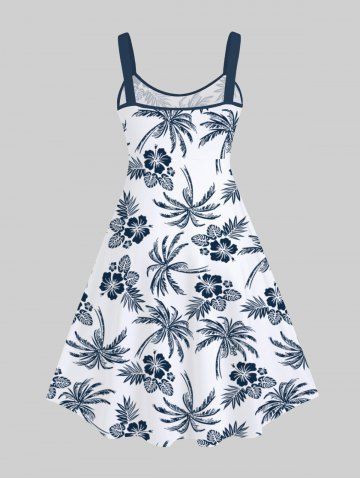Plus Size Tropical Leaves Floral Coconut Tree Print Hawaii A Line Tank Dress - White - 1x