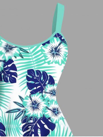 Plus Size Tropical Leaves Floral Print Hawaii A Line Tank Dress - Light Blue - 3x
