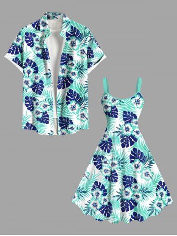 Graphic Dresses > Plus Size Tropical Leaves Floral Print Hawaii A Line Tank Dress
