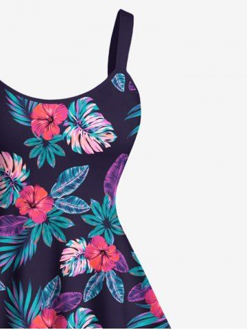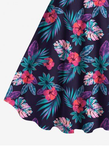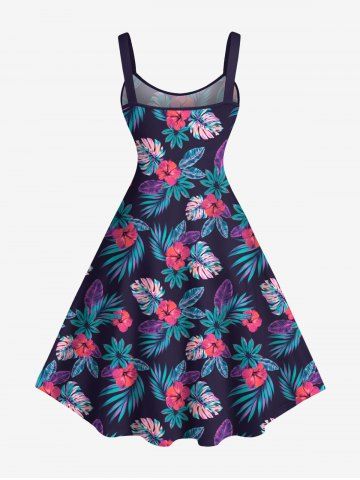 Graphic Dresses > Plus Size Tropical Leaves Floral Print Hawaii A Line Tank Dress