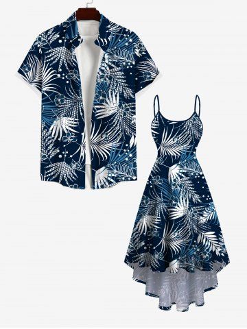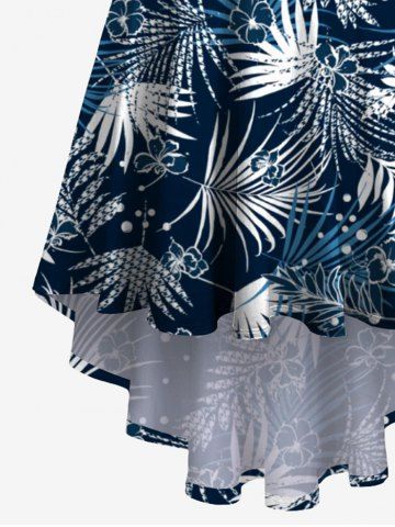 Plus Size Tropical Leaves Floral Print Hawaii High Low Asymmetric Cami Dress - Midnight Blue - S