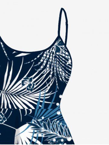 Plus Size Tropical Leaves Floral Print Hawaii High Low Asymmetric Cami Dress - Midnight Blue - M