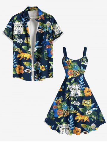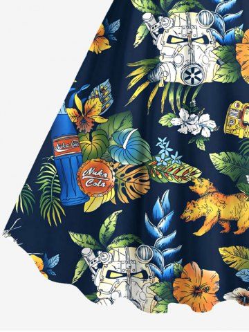 Graphic Dresses > Plus Size Tropical Leaf Hibiscus Flower Print Hawaii A Line Tank Dress