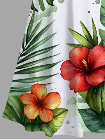 Graphic Dresses > Plus Size Tropical Leaf Hibiscus Flower Print Hawaii Cold Shoulder Crisscross Strappy A Line Maxi Dress