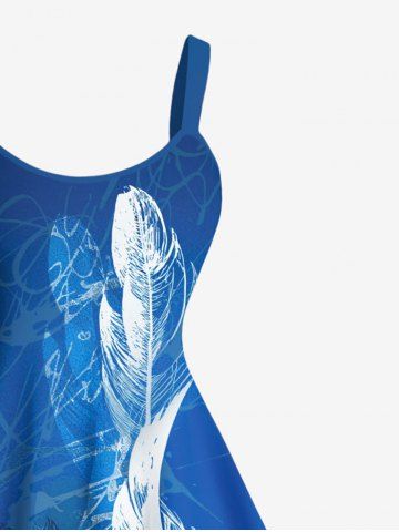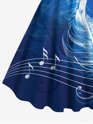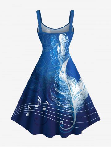 Plus Size Tropical Leaves Music Symbol Print Hawaii Ombre A Line Tank Dress - Blue - 5x