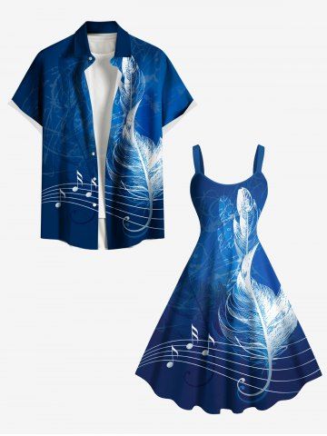 Graphic Dresses > Plus Size Tropical Leaves Music Symbol Print Hawaii Ombre A Line Tank Dress