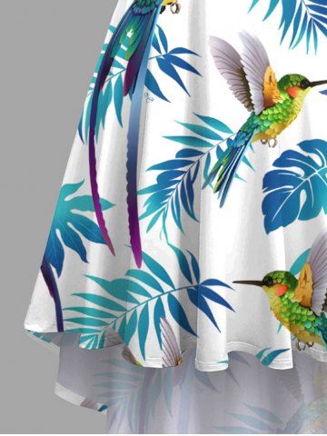 Graphic Dresses > Plus Size Tropical Leaves Parrot Bird Print Hawaii High Low Asymmetric Cami Dress