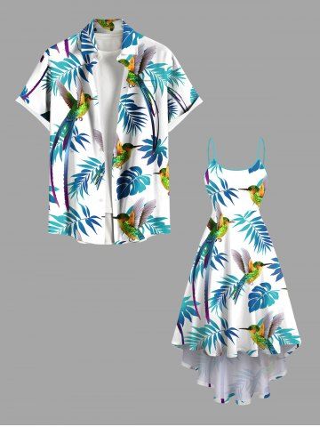 Graphic Dresses > Plus Size Tropical Leaves Parrot Bird Print Hawaii High Low Asymmetric Cami Dress