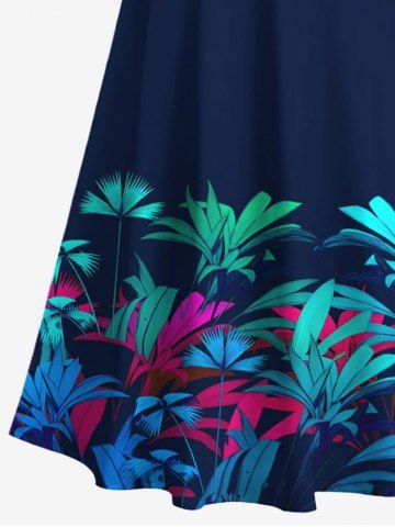 Plus Size Tropical Leaf Zig Zag Print Hawaii Cold Shoulder Crisscross Strappy A Line Maxi Dress - Deep Blue - 6x