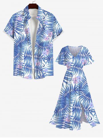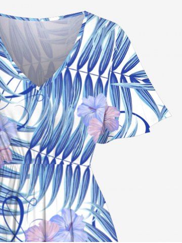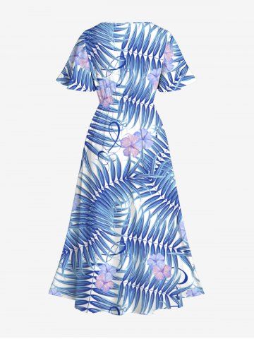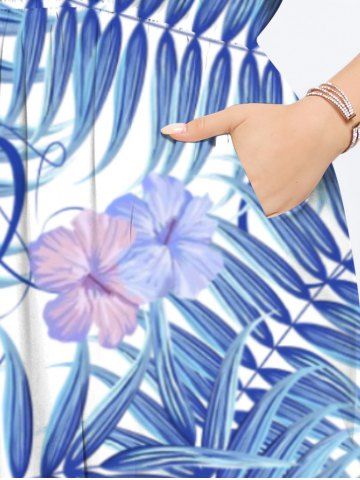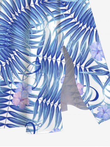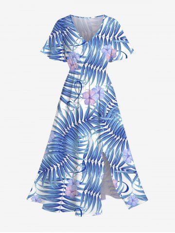 Plus Size Tropical Palm Leaf Flower Print Pocket Hawaii Split Dress - Light Blue - 6x