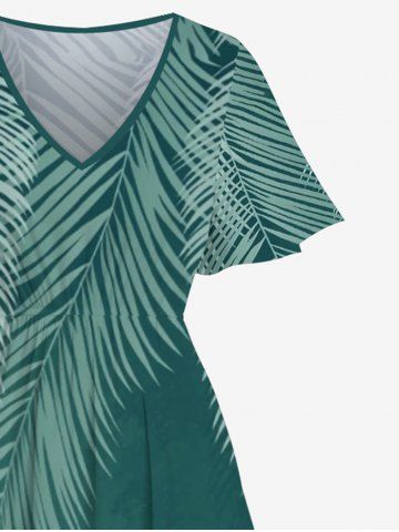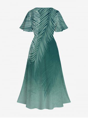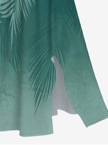 Plus Size Tropical Palm Tree Leaf Ombre Print Split Hawaii Midi Dress - Green - 3x