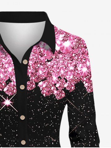 Plus Size Turn-down Collar Glitter Sparkling Galaxy Sequins Rhinestone Print Buttons A Line Shirted Party Dress - Light Pink - 6x